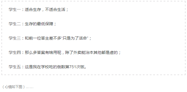 問題一:如何用一句清新脫俗的話來形容學校食堂飯菜難吃?