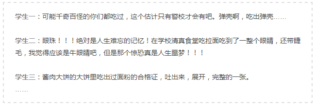 問題二:說說你在學校食堂的飯菜里吃出來過什么奇葩東西?