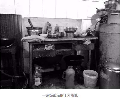 “店外沒有牌匾,店內看不到食品經營許可證和健康證,各種食材亂堆,地面臟亂,有不少學生在里面用餐。”
