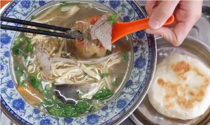 十幾塊錢巨大一碗的牛肉粉絲湯,再配兩個(gè)熱乎的白面餅,足夠兩個(gè)姑娘吃啦。也可以把餅子撕成小塊泡著吃,直接吃的味道也超棒。