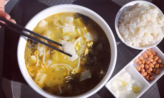 兩葷三素任選的麻辣香鍋飯,一份只要12元,打菜的師傅下手很扎實(shí),基本不存在手抖的情況,冒著尖的一大盤兒,看著都覺得撐。