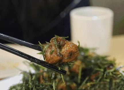 需要在茶葉堆兒里翻出來(lái)的茶香雞,用的是可以直接吃的竹尖茶葉,茶香很好的去除了雞肉的油膩,有種別樣的滋味。