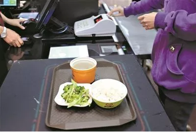 2、選完餐,學(xué)生便端托盤來到出口排隊結(jié)算。