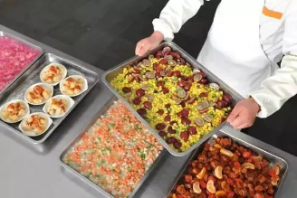 食材單一的根本原因是,哪種食材便宜買哪種,蔬菜不如水果便宜時,食堂廚師也可以閉上眼為你炒,層出不窮地開發(fā)出了月餅炒辣椒、玉米炒葡萄,西瓜炒肉等“第九大菜系”,也都是大廚們巧婦難為無米之炊的無奈選擇。