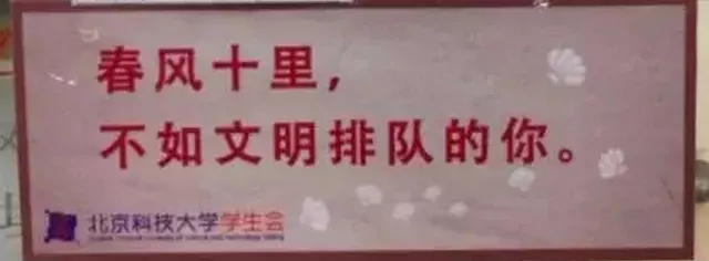 比如北京科技大學(xué)萬秀食堂貼出的標(biāo)語,直指插隊(duì)、浪費(fèi)等行為,看到這些,你還好意思插隊(duì)嗎?