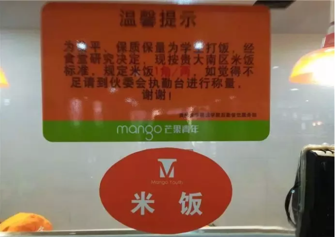 因?yàn)槌圆伙?,同學(xué)們紛紛向?qū)W校后勤部及食堂負(fù)責(zé)人反映。不久后,食堂便做出了改進(jìn),為了打消同學(xué)們的顧慮,食堂還專門制作了接地氣的標(biāo)語,掛在了食堂最顯眼的地方。