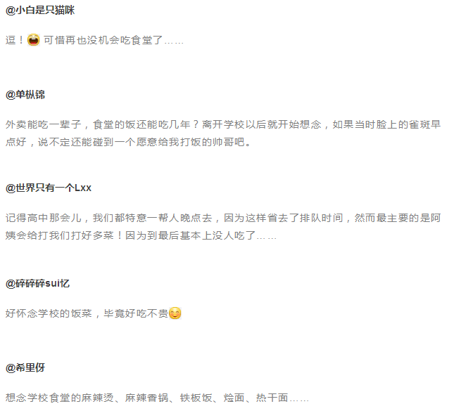 同時,也引起了一眾網(wǎng)友的回憶殺,不管食堂飯菜如何,里面也滿載著青春時期的酸甜苦辣……
