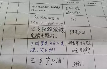 前段時(shí)間,徐州江蘇師范大學(xué)五食堂推出意見簿,讓學(xué)生在意見簿上反饋并寫下想吃的菜式,到第二天食堂師傅便會(huì)盡力滿足。