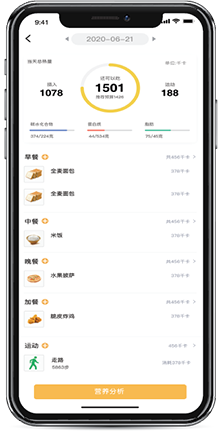 就餐者在選餐時(shí)可以直接查看所取菜品的營養(yǎng)成分及攝取量,在用餐結(jié)束后還可以隨時(shí)通過移動(dòng)端查詢營養(yǎng)分析報(bào)告。